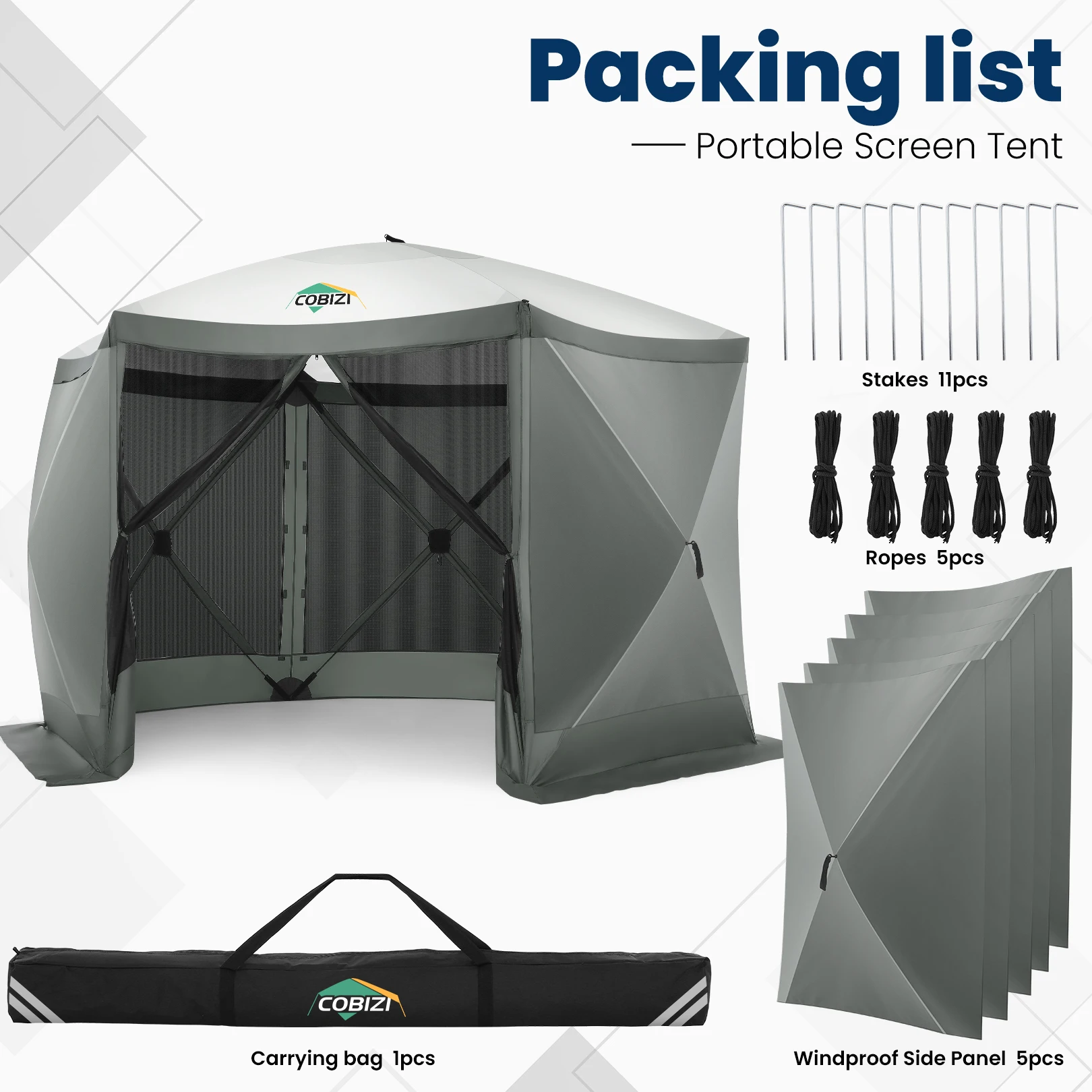 12x12ft Pop up Gazebo Screen House Tent with Mosquito Netting, 6 Sided Pop-up Canopy Shelter Tent Easy-Set Portable Gazebo