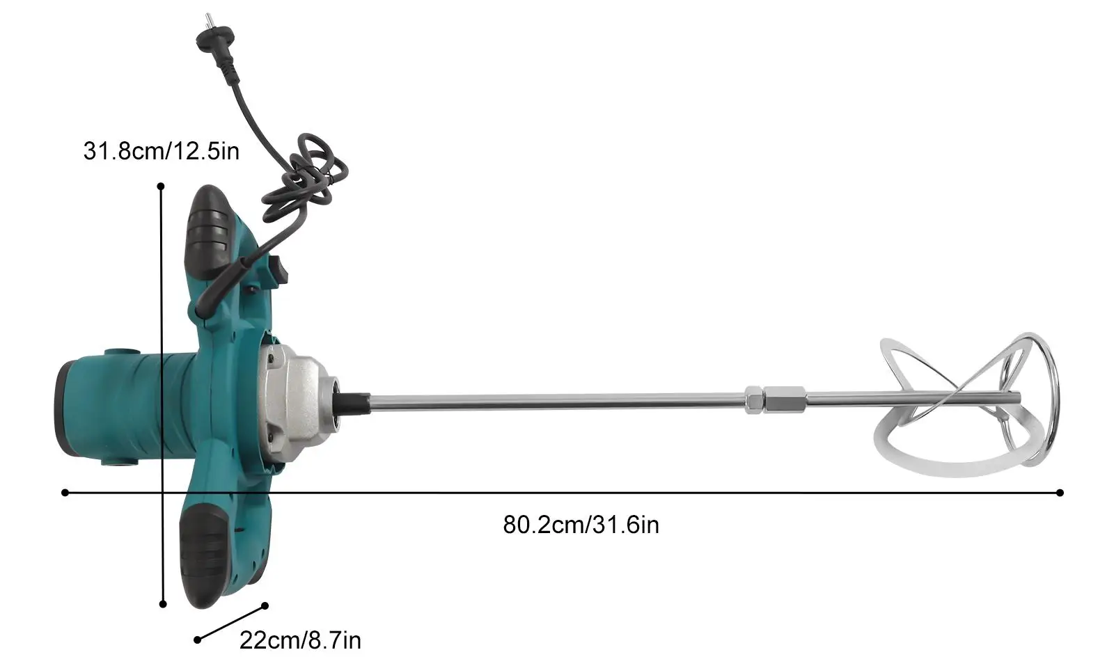 Premium Material——The high-quality iron galvanized rod head and special alloy gear make the concrete mixer wear-resistant and have a long service life. The handpiece is made of aluminum, which is sturdy and durable and is not easy to crack.
