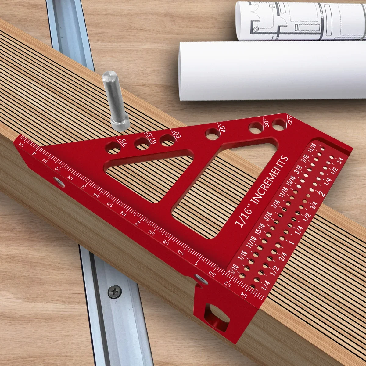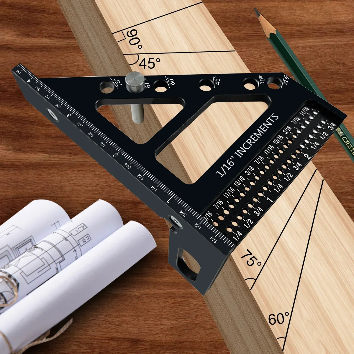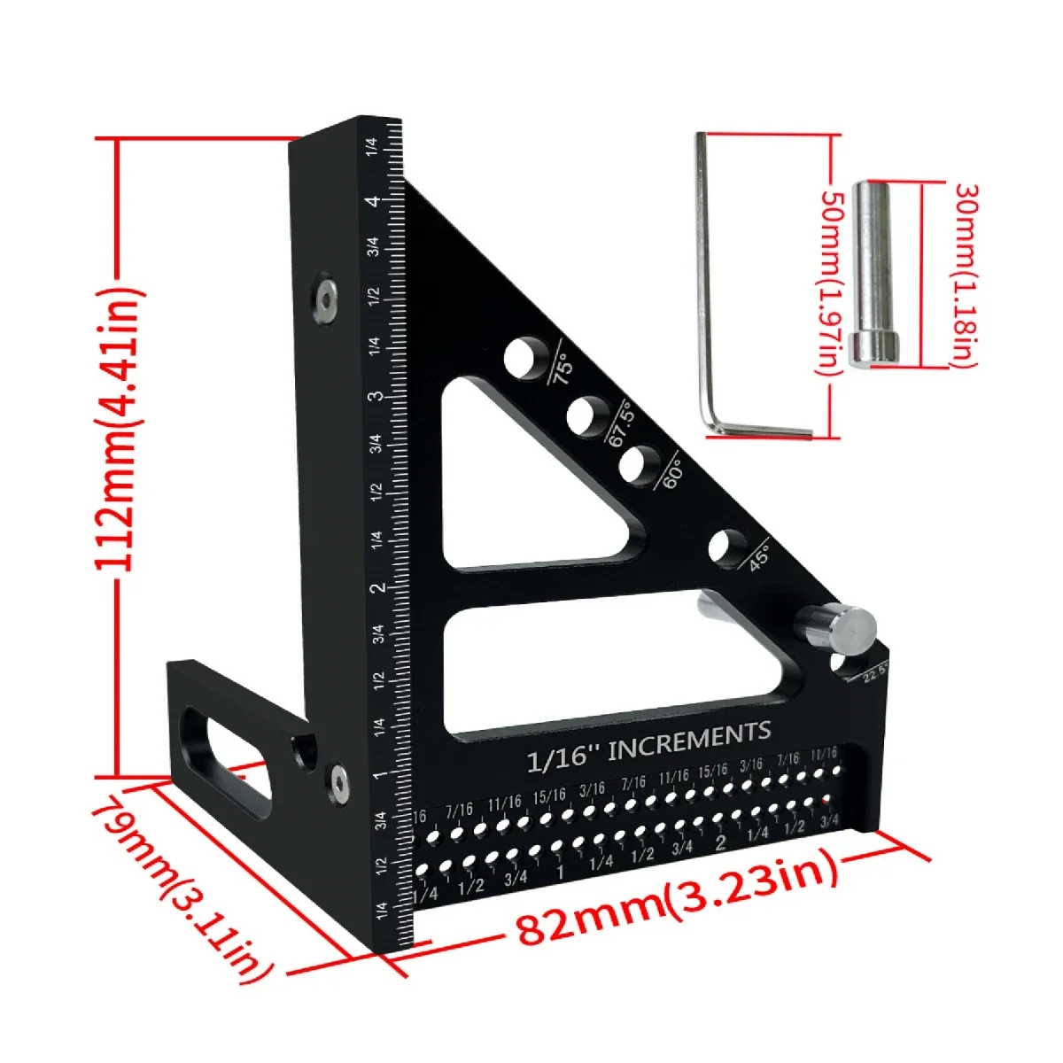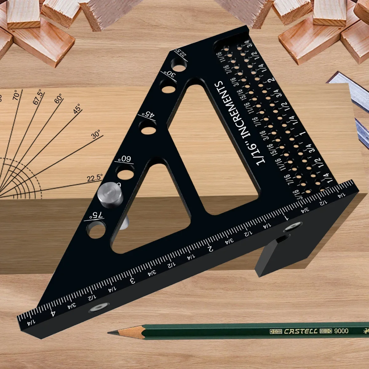 woodworking angle square, triangle ruler, t-type scriber, multi-angle protractor, woodworking marking tools, 3D square for carpenters, aluminum alloy ruler, GDART woodworking tools, 22.5 degree ruler, 45 degree protractor, 60 degree square tool, 90 degree triangle ruler, CNC aluminum woodworking tool, combination angle square, hole marking ruler, miter layout guide, precision layout tool, carpentry measuring tool, woodworking square CNC, triangle scribe tool, furniture making tools, mortise measuring tool