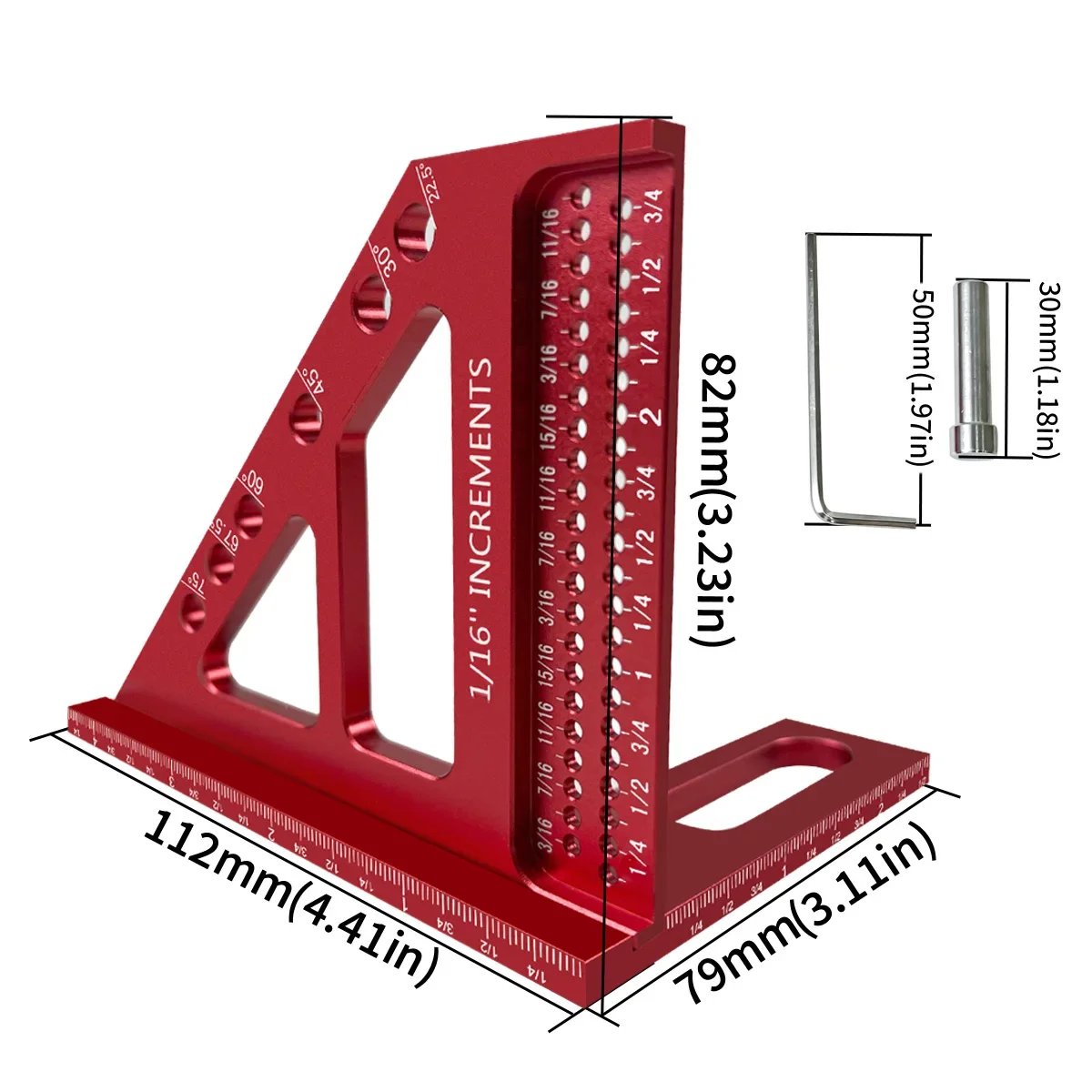 This upgraded multi-angle woodworking square is a powerful 3-in-1 measuring and marking tool. Whether you’re working on joinery, cabinetry, or precision carpentry, this triangle ruler ensures accurate and clean lines at popular angles including 22.5°, 30°, 45°, 60°, 67.5°, and 90°.