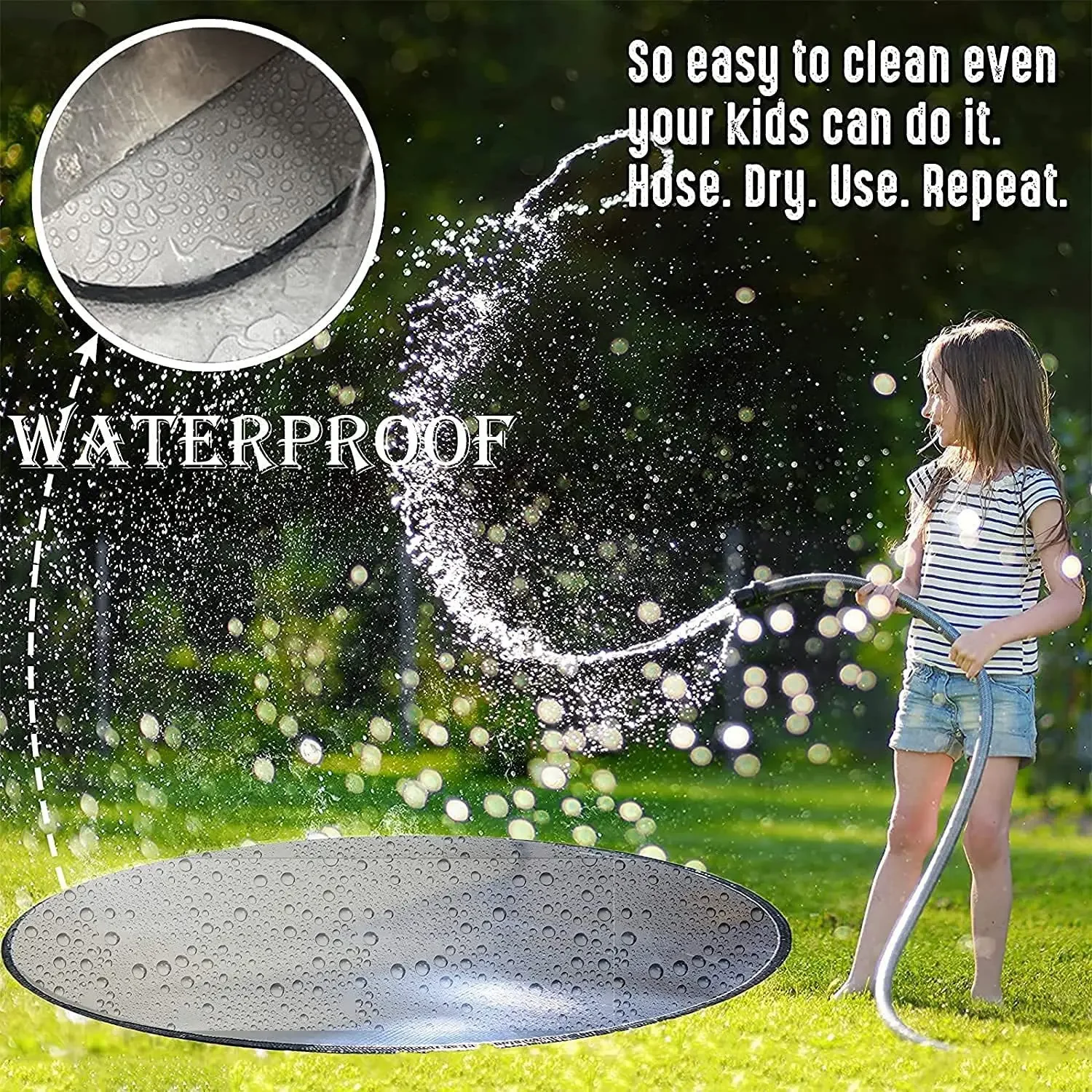 Round under grill mat with silicone coating are ideal for protecting your deck or patio from food spills, grease splashes and stains. 36 inch firepit floor rug will not stick or leave marks on your deck surface and grass. Please make sure there must be at least 8'' of space between the heat source and fireproof mat.