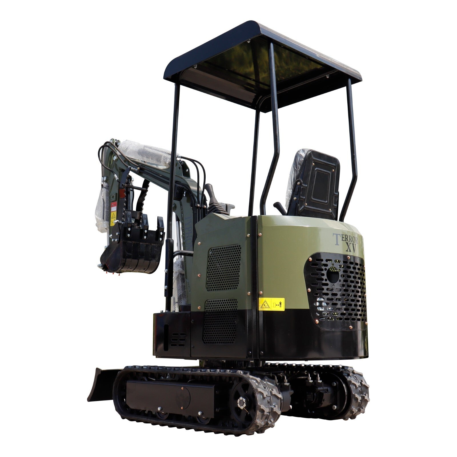 The TYPHON TERROR XV STORM is a 1.05 ton mini excavator engineered for small-scale construction, landscaping, and earthmoving projects. Equipped with a 13.5 HP Briggs & Stratton XR2100 engine and EPA certification, this compact trench digger delivers reliable performance, excellent maneuverability, and superior durability. Designed for gardens, farms, public spaces, parks, orchards, and small construction sites, it is a tough, fuel-efficient, and user-friendly solution for professionals and first-time operators alike.