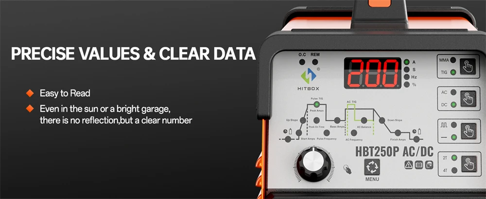 HITBOX HBT250P AC/DC TIG Welder – 200A Digital Pulse IGBT Inverter | Aluminium & Steel | MMA ARC Stick 220V