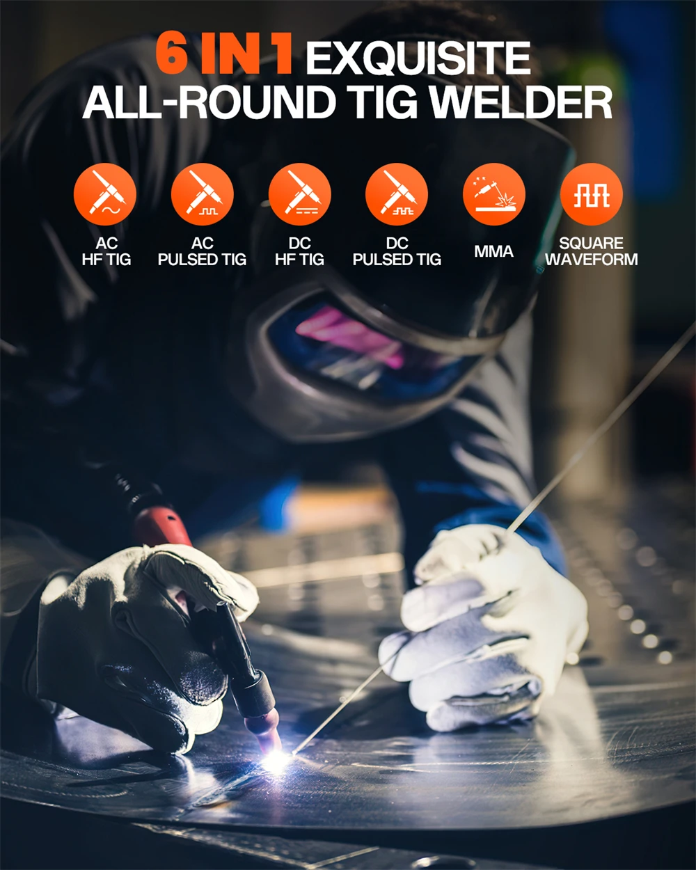 - Welding Modes: AC/DC TIG, HF TIG, MMA ARC Stick