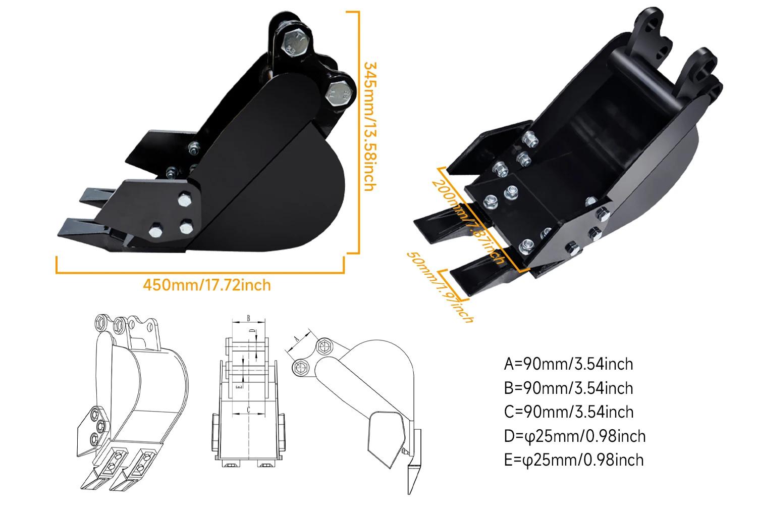 - ✅ 200mm Narrow Bucket