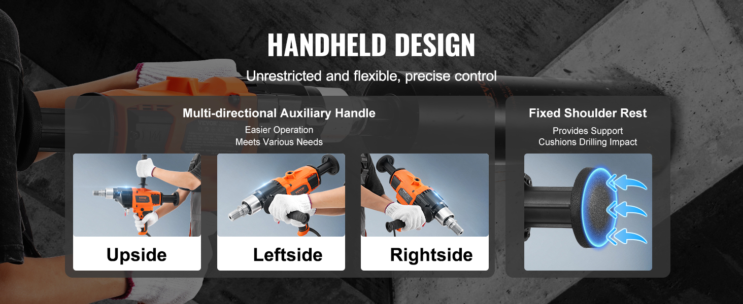 Handheld Design for Maximum Control: The core drilling machine features optimized weight distribution and structural design, allowing easy handling in various construction environments. Whether working in tight spaces or at elevated heights, you can easily adjust the drilling angle and depth for perfect results every time.