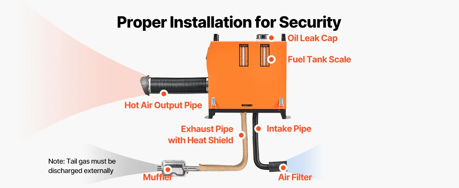 Stay Warm Anywhere: Our diesel heater 8kw is suitable for altitudes below 9843 feet/3000 m and operates smoothly in surrounding temperatures ranging from -104 °F to 104 °F/-40 °C to 40 °C. Whether in high-altitude or low-temperature areas, this portable diesel heater can provide continuous warmth wherever you go.