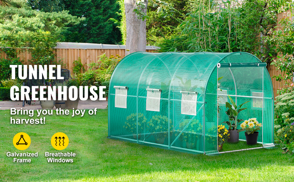 - Excellent Air Ventilation: With 6 mesh windows, our tunnel greenhouse can keep out small "annoyances" and increase cross ventilation and airflow. Moreover, we have a roll-up zipped door for air to freely enter and exit. Keep your space clear of debris and make sure every breath you take is one to remember.