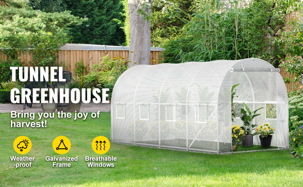 - Excellent Air Ventilation: With 8 mesh windows, our tunnel greenhouse can keep out small "annoyances" and increase cross ventilation and airflow. Moreover, we have a roll-up zipped door for air to freely enter and exit. Keep your space clear of debris and make sure every breath you take is one to remember.